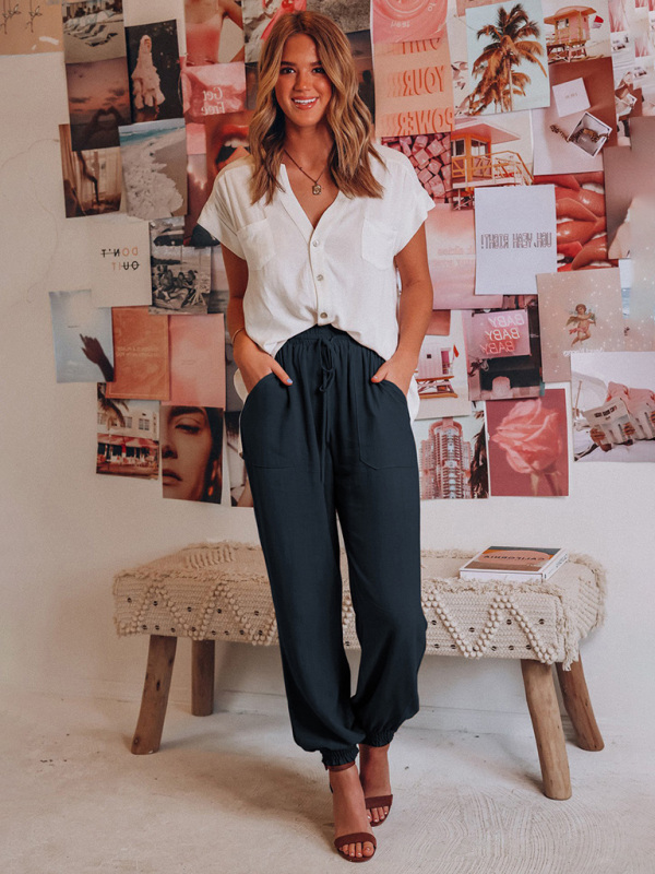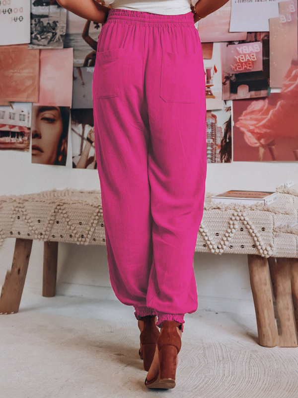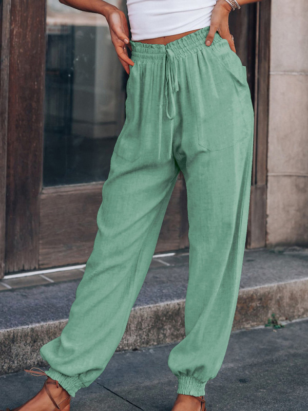 Bloomers Solid Color Cotton Linen Pants Ladies Pocket Drawstring Casual Pants