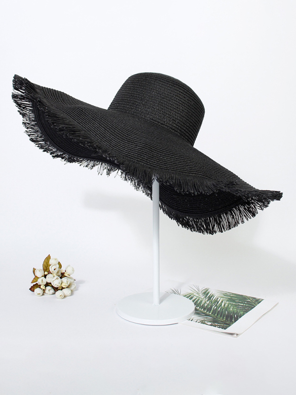 Outdoor large brim beach hat braided fur-brimmed straw hat bohemian style beach hat
