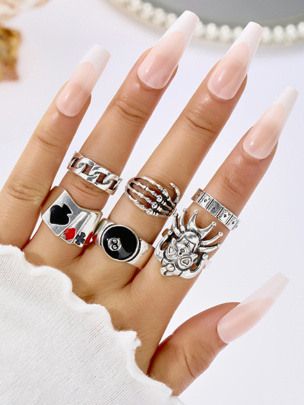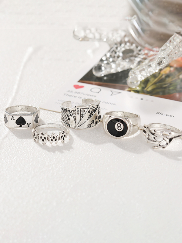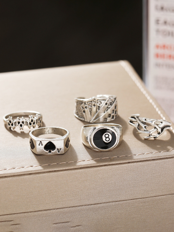 Playing Card Ring Vintage Spade Card Ring Creative Personality Joint Ring Set 5-piece Set