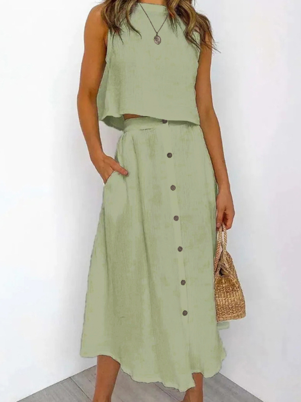 Women’s Round Neck Tank Mid-length Breasted Two-Piece Dress