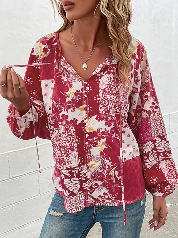 Women’s Woven Paisley Balloon Sleeve Shirt